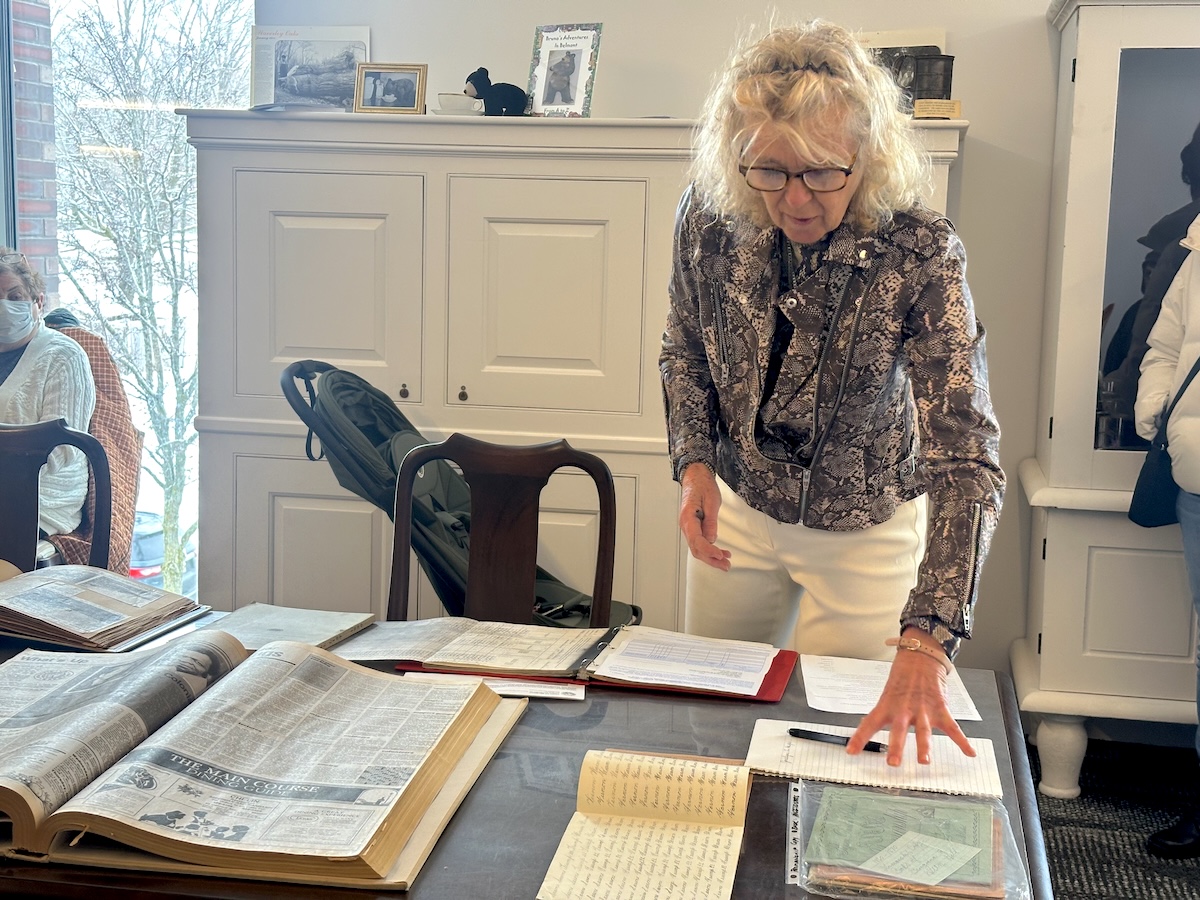 Viktoria Haase, Belmont Historical Society president, provided an overview of the society’s collection in its new digs in the Belmont Library, including old newspapers and census ledgers in the Local History Room.